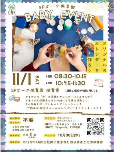 ✨当園にご興味のある方向け✨お子さまとの写真で作る 手作りカレンダー のイベントを開催します💛 (さらに…)