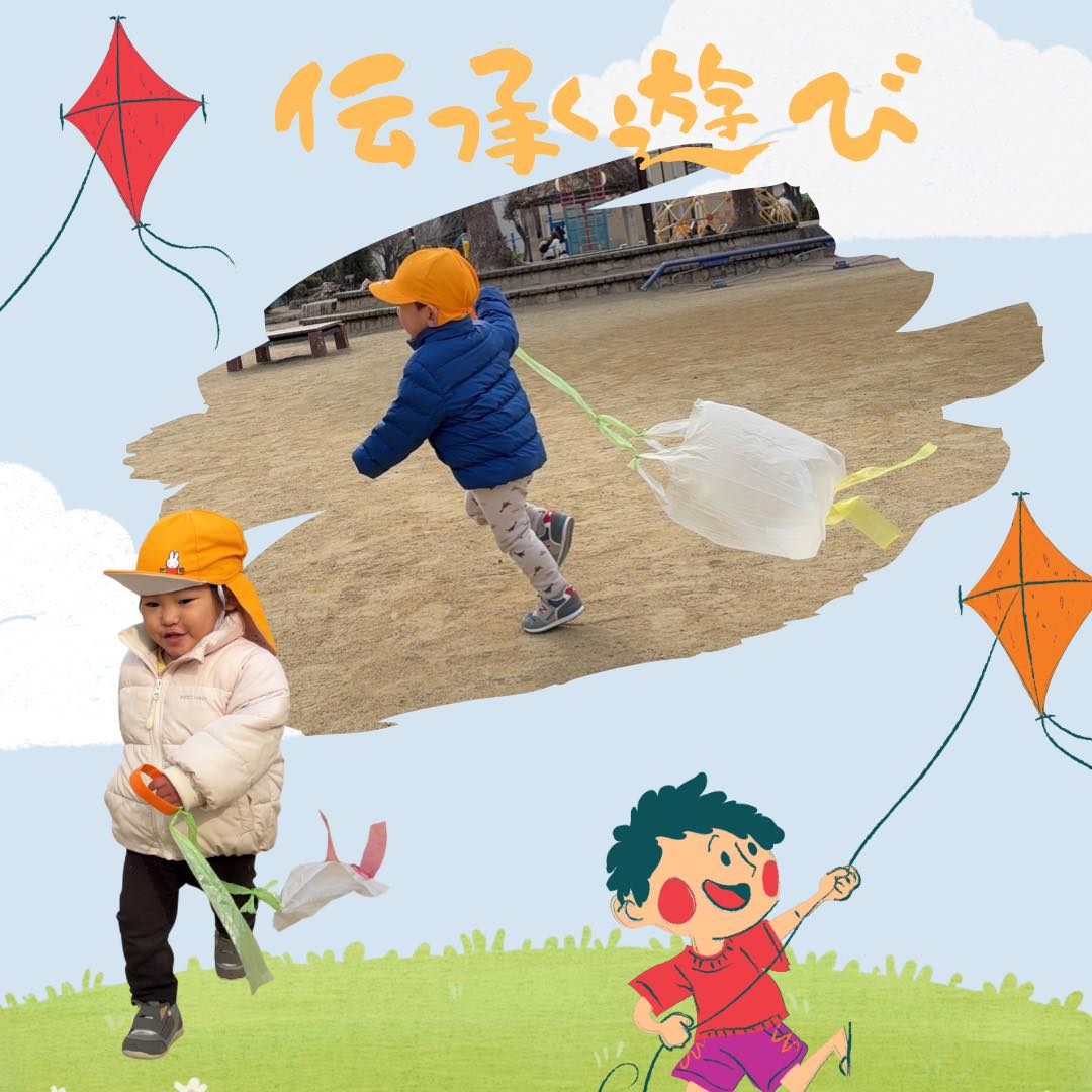 🪁伝承遊び🪁 1歳児クラスでは、伝承遊びで凧上げをしました️ ビニール袋に子どもたちがシールを貼った、オリジナルの凧を近くの公園へ持っていきました🪁 公園内のグランドで凧上げを楽しみ、凧を持って一生懸命走る姿が、とても可愛かったですよ🤭 #spオーク保育園 #企業主導型保育園 #茨木市 #茨木市保育園探し #伝承遊び #凧上げ #凧上げ🪁#保育園 #保育園探し