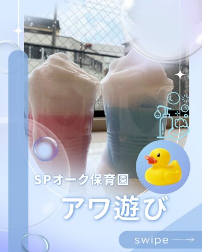 他にも、水や色水をプラスチックコップに入れて、上に泡を乗せてクリームソーダのようにしてジュースを作り、楽しみましたよ🍹