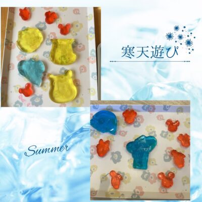 手のひらでとかしたり、カップに入れたり、色々な形の氷を並べたり…遊び方は無限大!